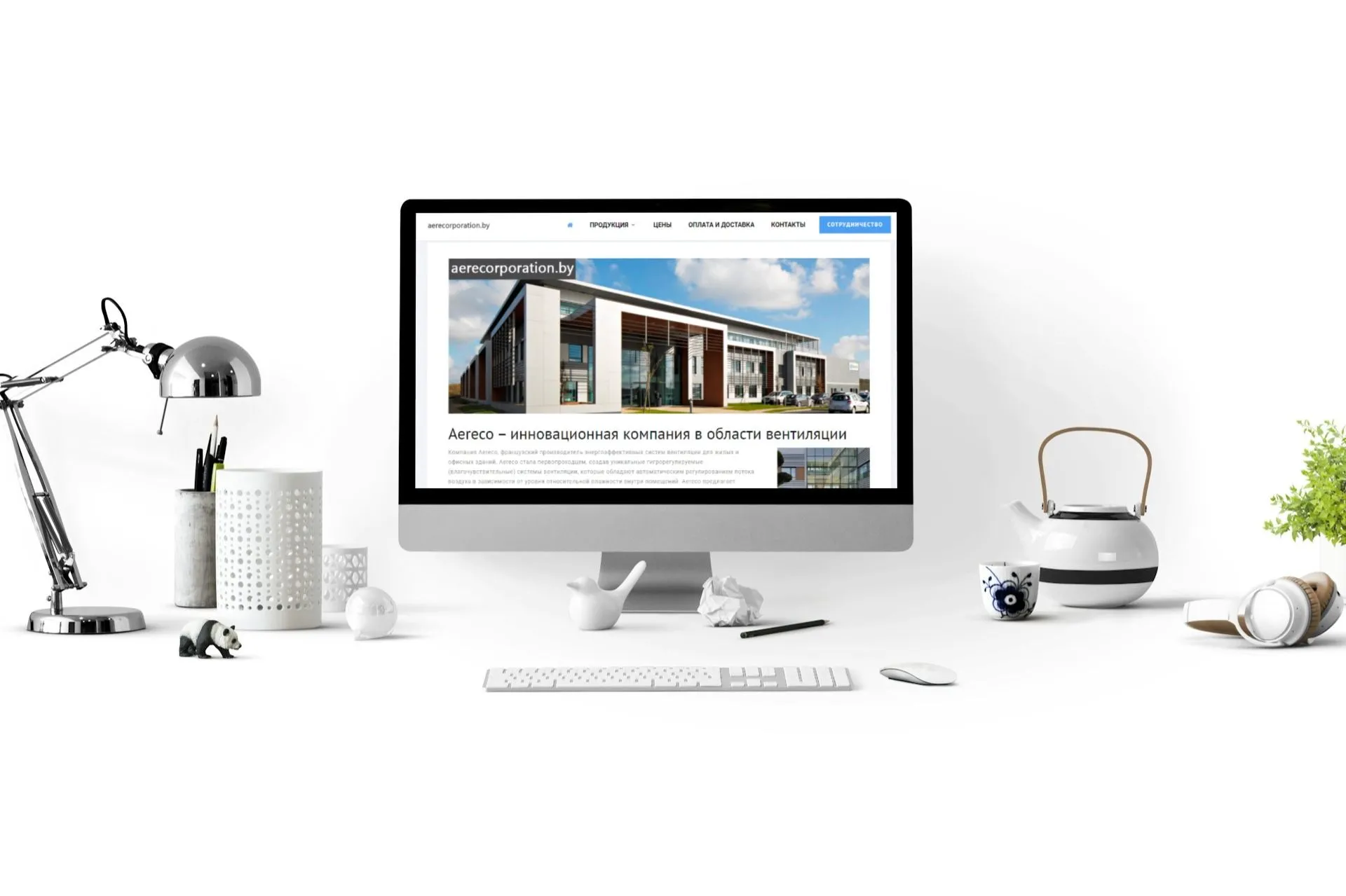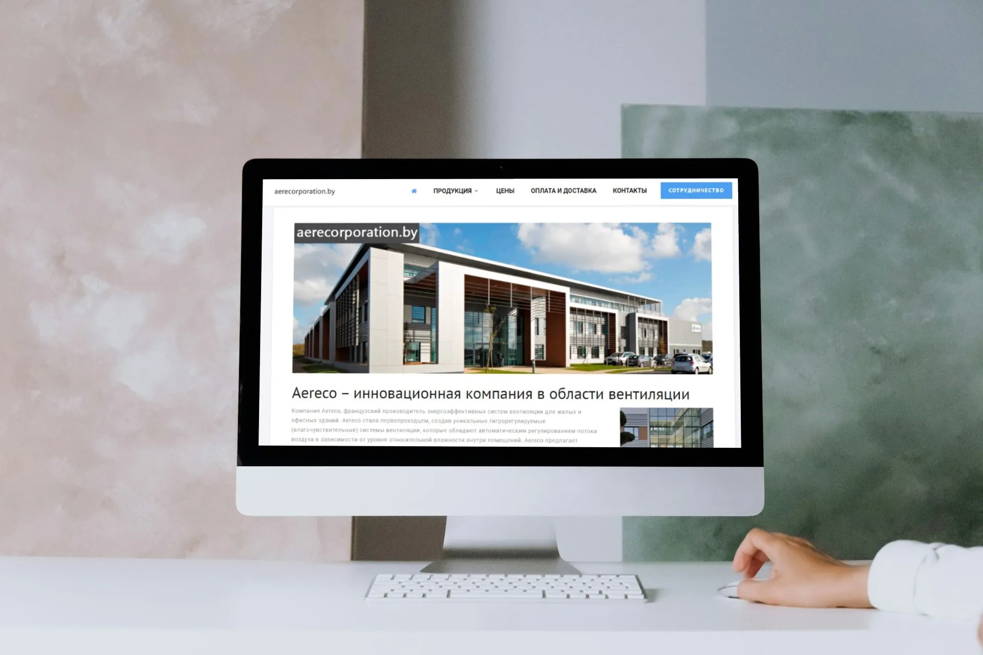 Задача: Разработать сайт компании Aereco. Основное направление компании - разработка инновационных вентиляционных решений для жилых и общественных зданий с ключевой концепцией адаптивного регулирования скорости потока воздуха в зависимости от загруженности помещений.